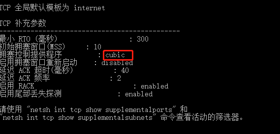 CTCP & cubic 发表于2022年3月3日由aichiao 回复 netsh interface tcp show supplemental netsh int tcp set supplemental template=internet congestionprovider=ctcp