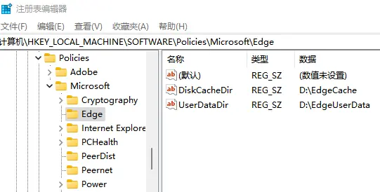 右键点击Edge,选择 新建 – 字符串值,命名如下: